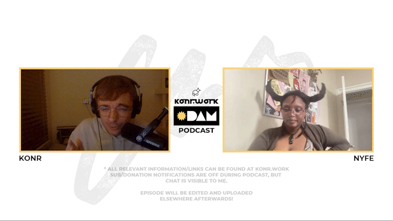 On the DAM PODCAST I (konr) have candid conversations with creatives of all kinds. This includes designers, artists, musicians, battle rappers, painters, and everything inbetween. We're available on every podcast platform in audio format and video is recorded while streaming live and uploaded later to YouTube.